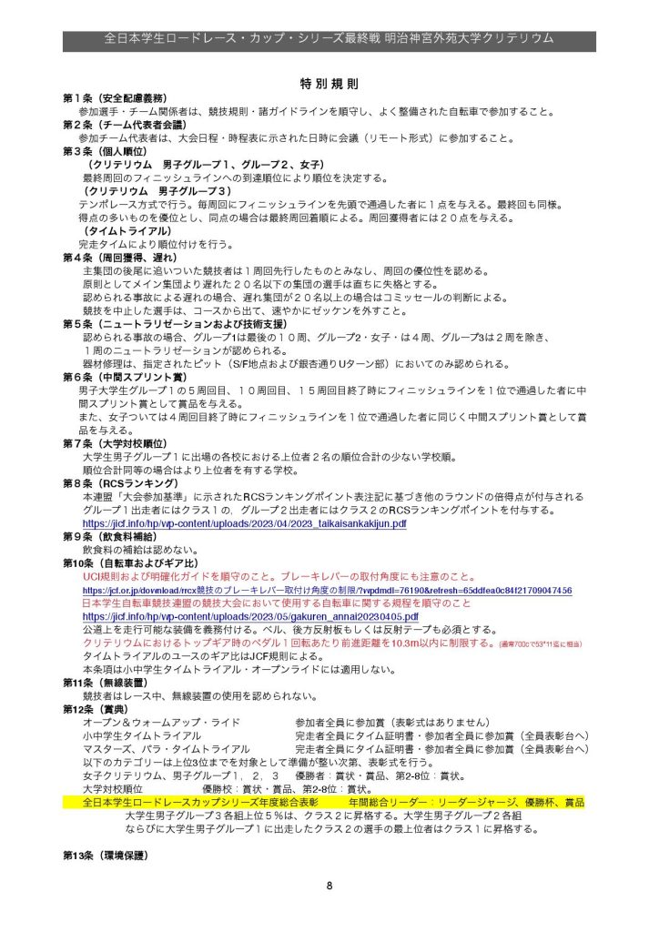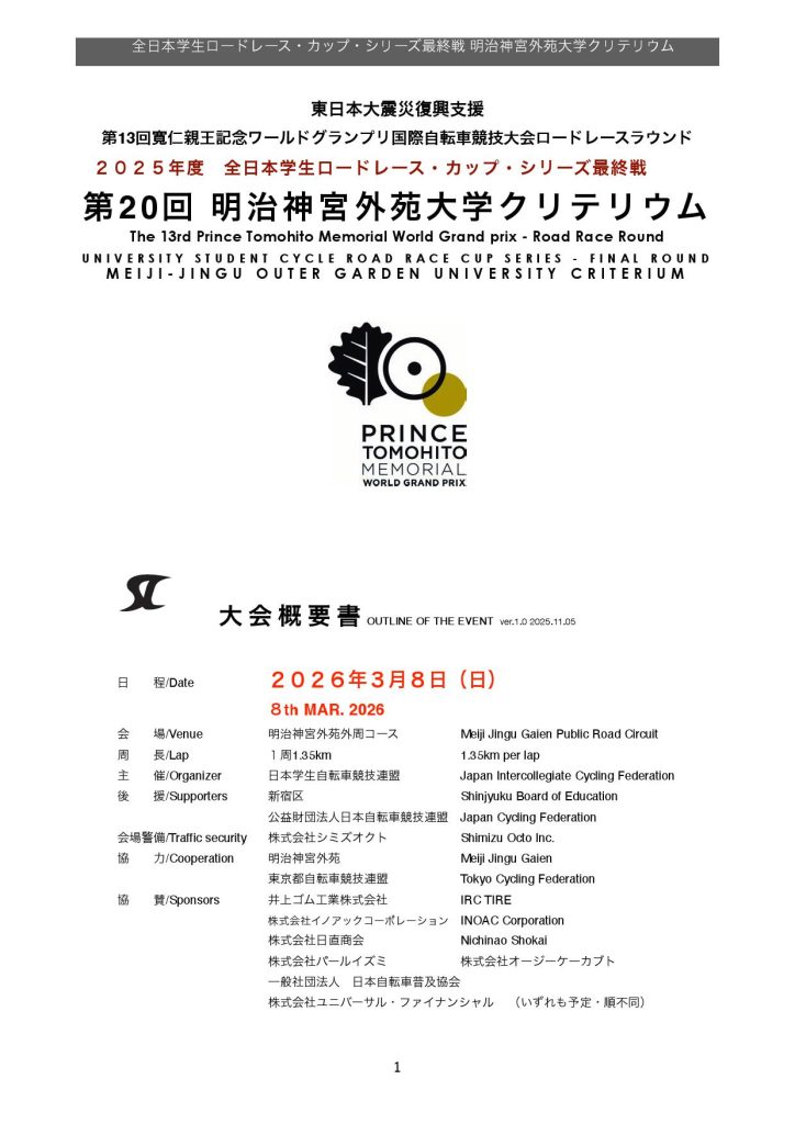 全日本学生RCS最終戦・第20回明治神宮外苑大学クリテリウム