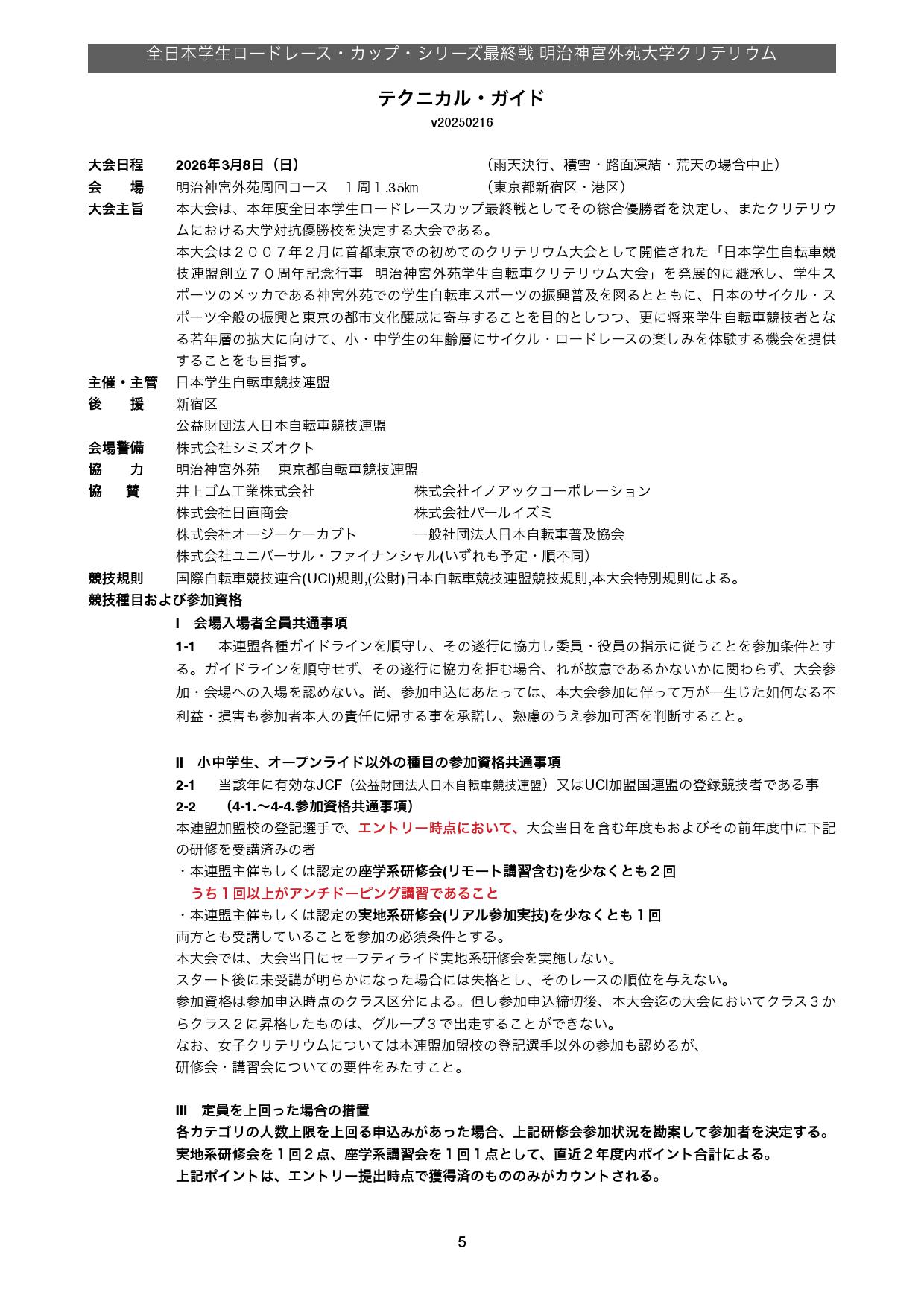 大会参加基準・代表指針