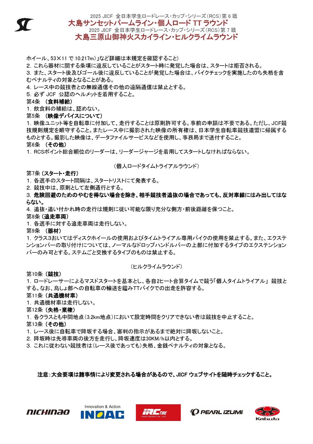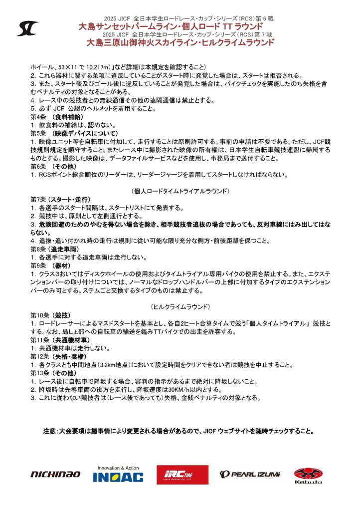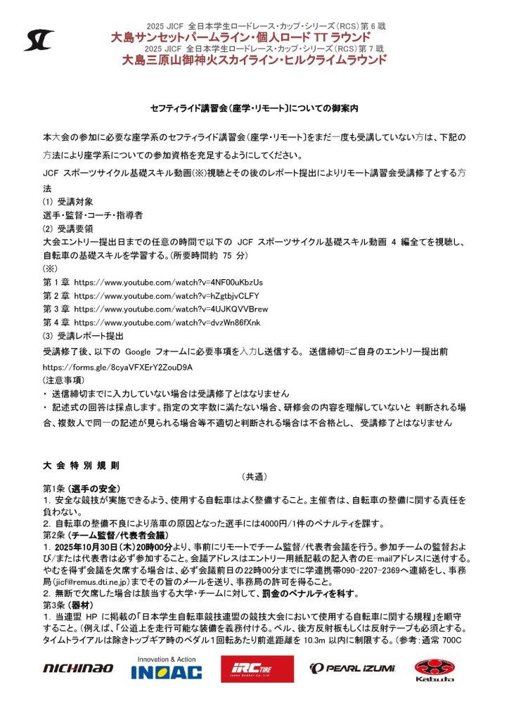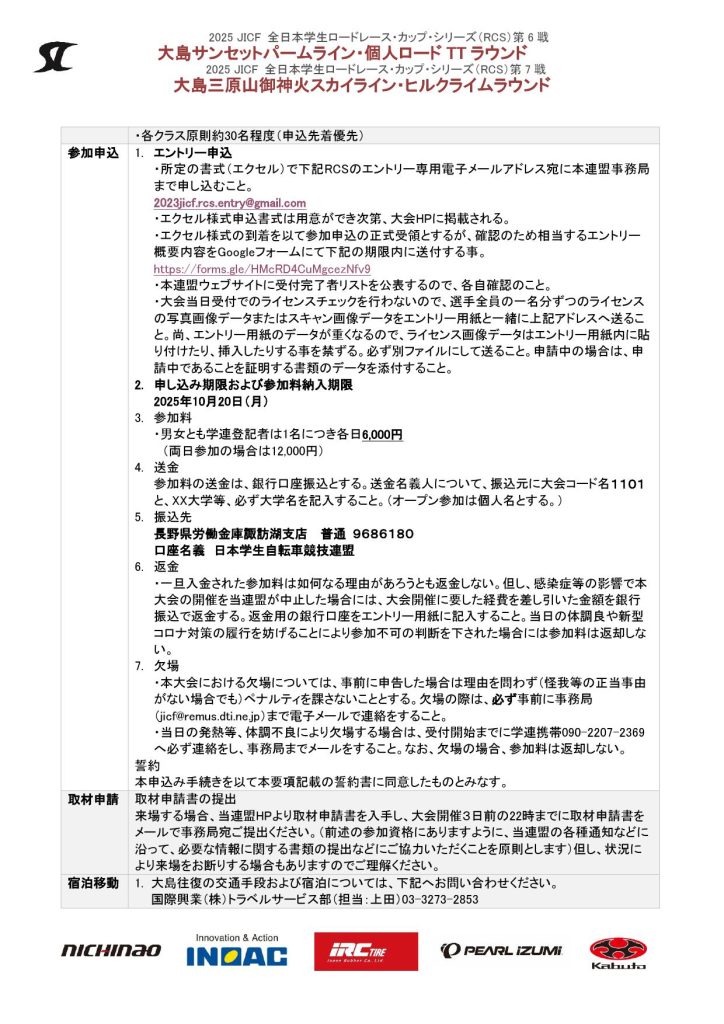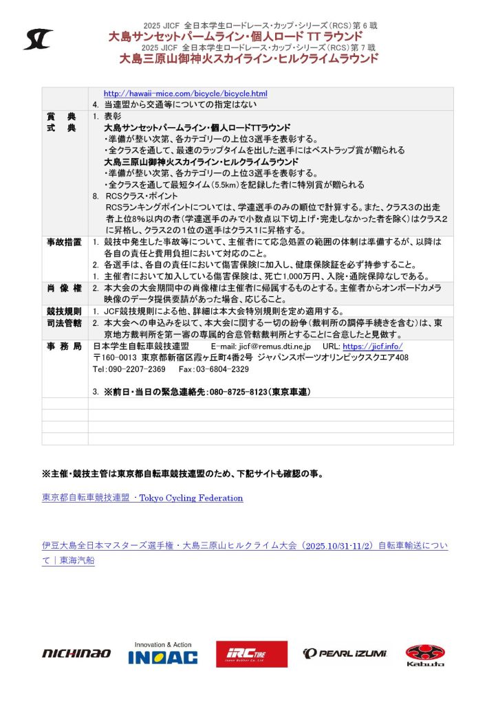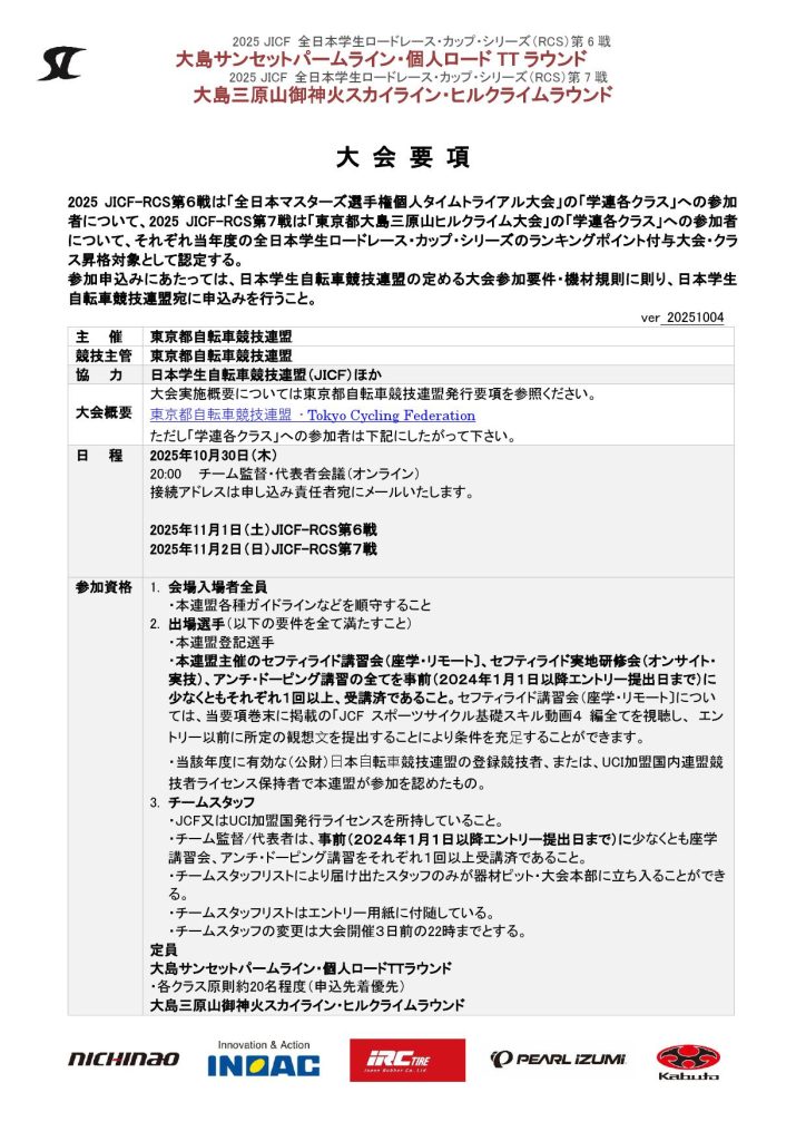 ダウンロードデータ 申込締切:2025/10/20 【共通】 2025/10/04:大会要項(PDF) 【RCS第6戦 個人ロードTTラウンド】 【RCS第7戦 ヒルクライムラウンド】