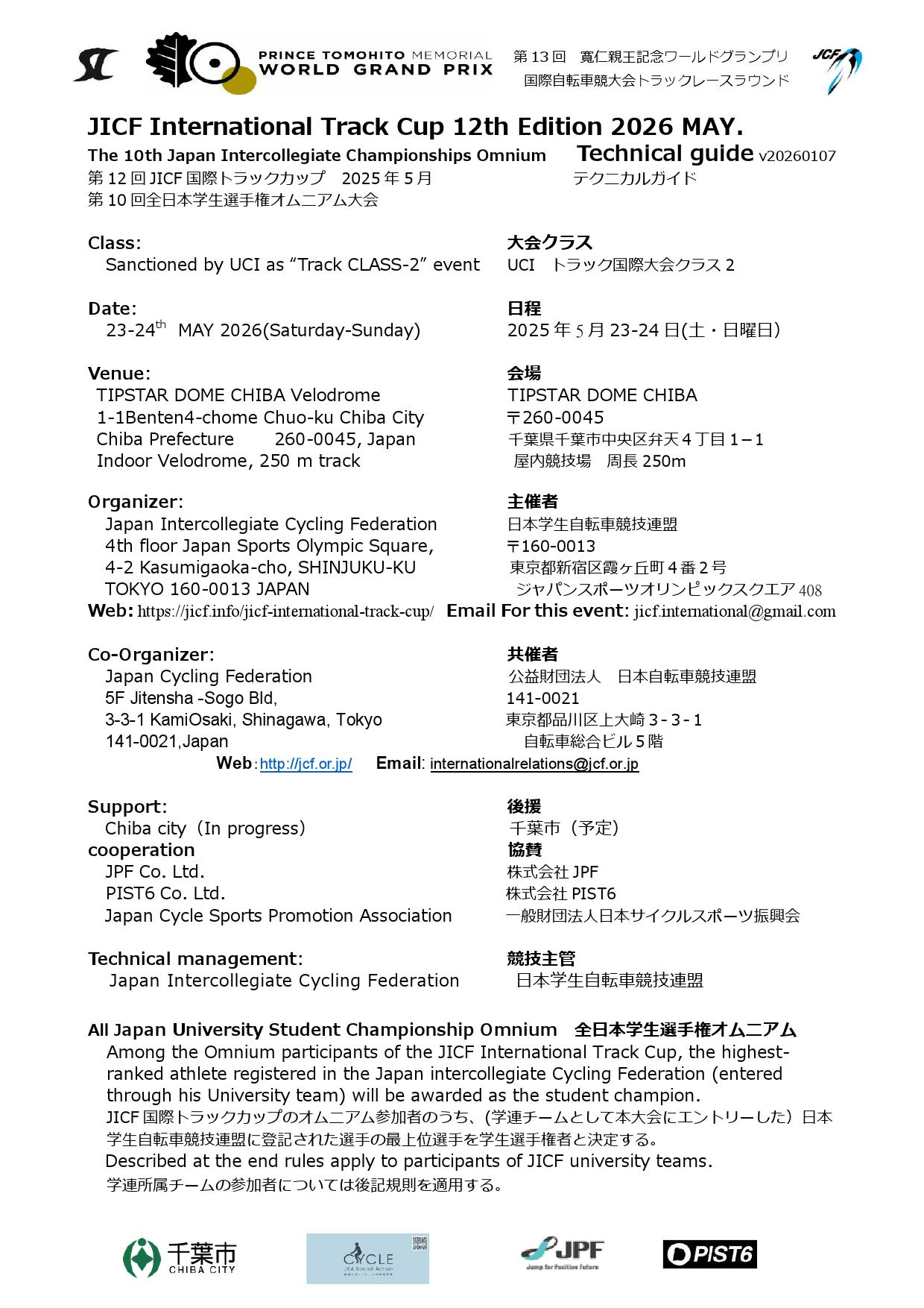 2018年に開催された第5回JICF国際トラックカップの大会ページです。