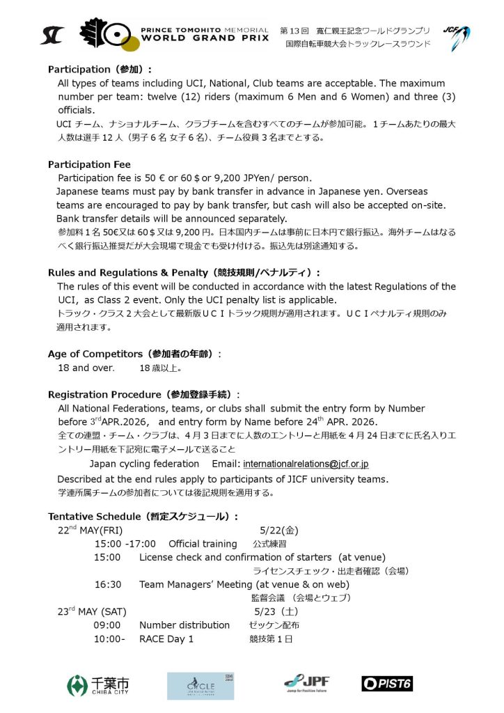 第12回 寬仁親王記念ワールドグランプリ 国際自転車競技大会