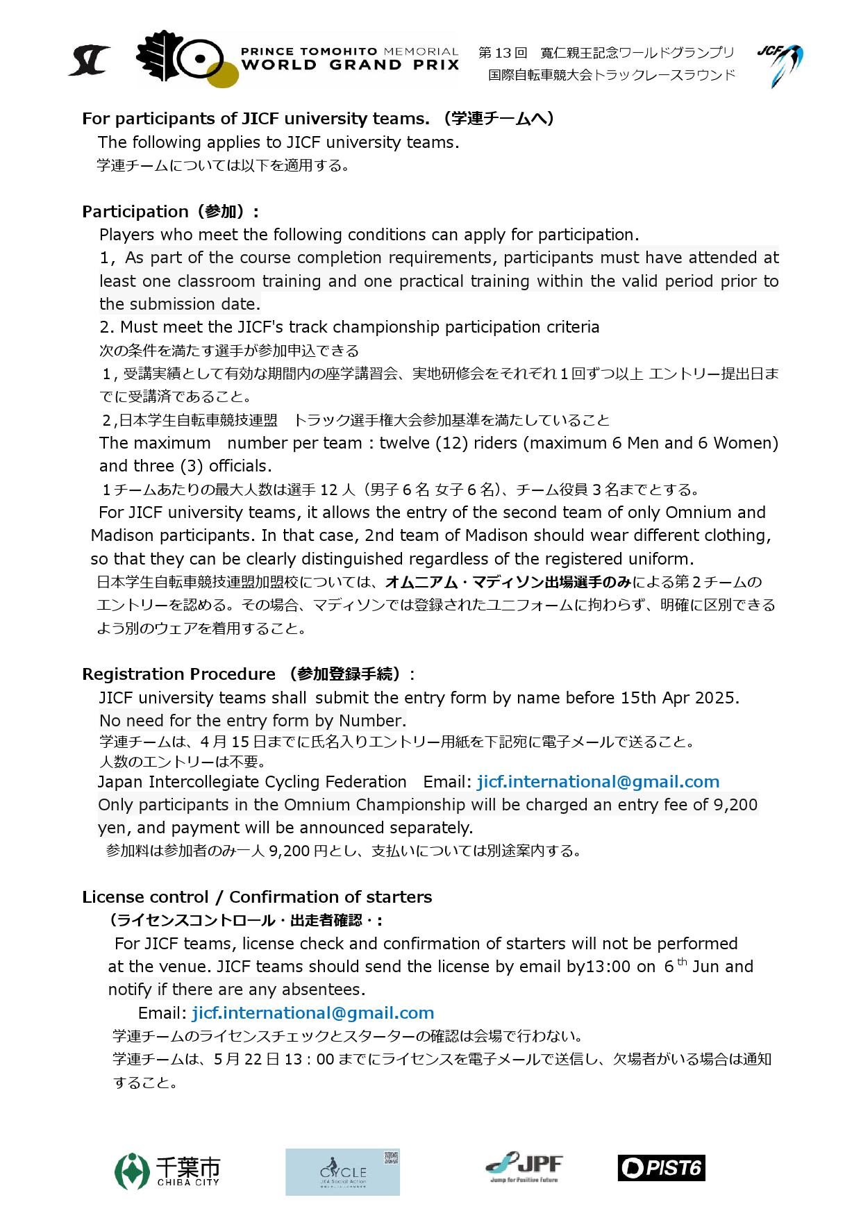 2025年に開催された第11回JICF国際トラックカップの大会ページです。