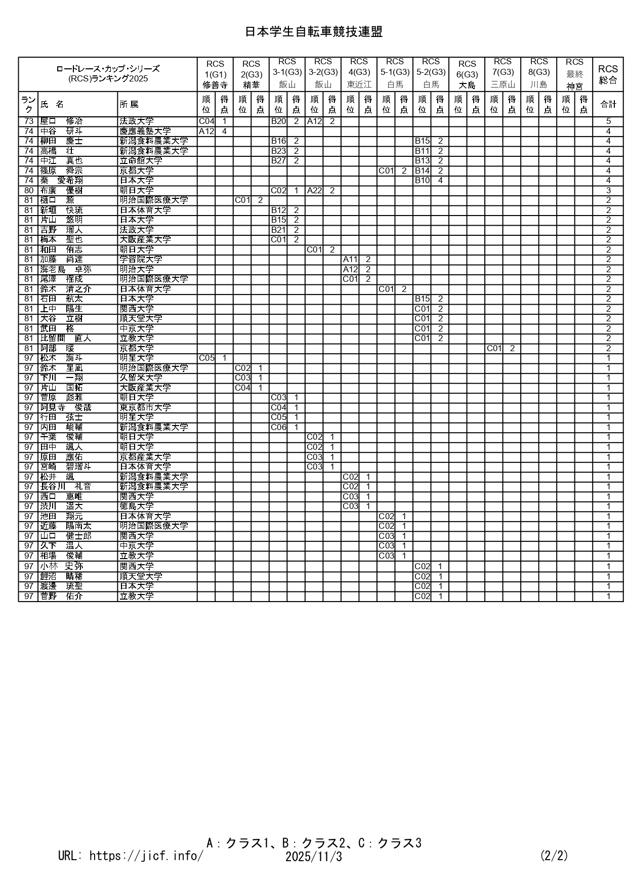 Japan Intercollegiate Cycling Federation official site